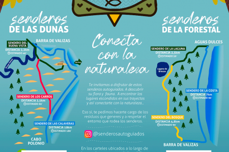 Los Senderos de las Dunas forman parte de los Senderos Autoguiados de Aguas Dulces, Barra de Valizas y Cabo Polonio (descubre también los Senderos autoguiados de la Forestal). Una invitación para conocer los secretos que atesoran las inmensas dunas y la costa atlántica entre Barra de Valizas y Cabo Polonio.