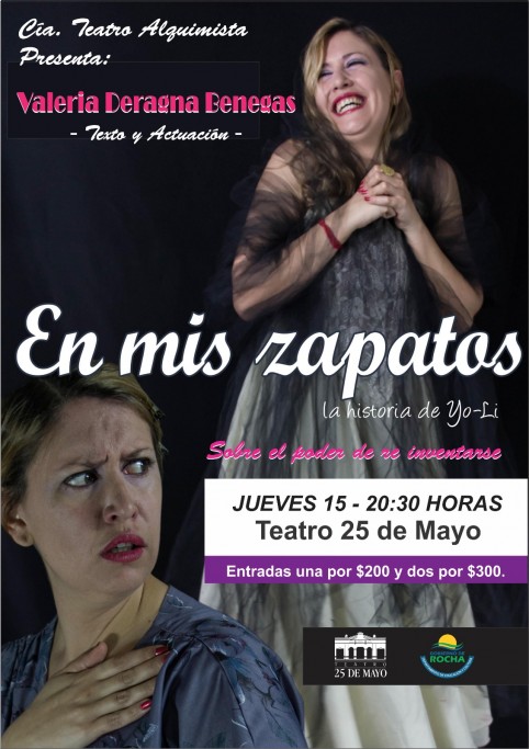 "En mis zapatos" es la historia de Yo-Li, y es la historia de una mujer contada en forma no lineal, con simpleza y profundidad. La protagonista de la historia, Valeria Deragña Benegas, cuenta su infancia con ternura, los conflictos familiares y su visión del mundo. Un acontecimiento en medio de esa historia cambia su vida rotundamente.