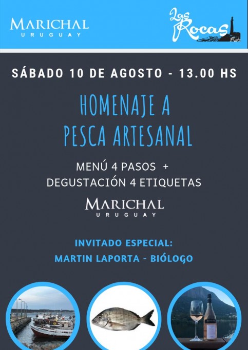 Las Rocas Restó te invita a un almuerzo especial en La Paloma, el sábado 10 de agosto. Homenaje a la pesca artesanal con un menú de 4 pasos y degustación de 4 etiquetas. Invitado especial Martín Laporta - Biólogo.