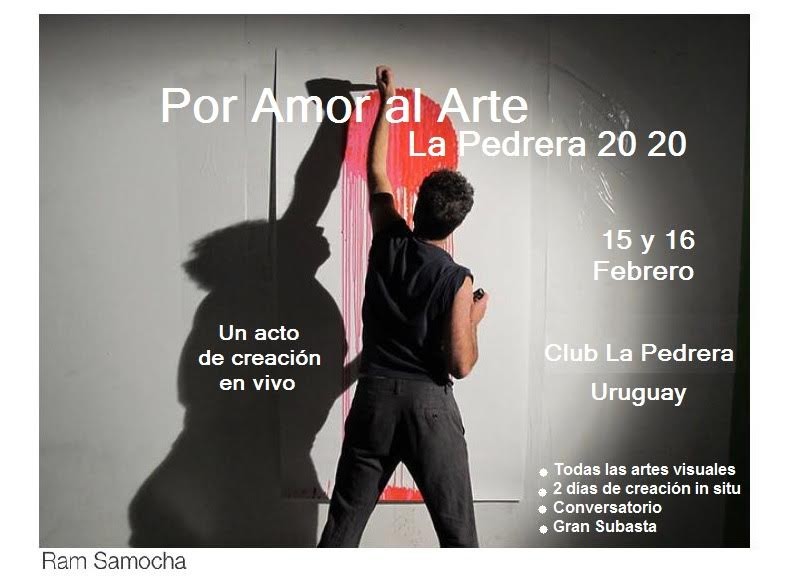 "Por amor al arte", un evento que reunirá a más de 15 artistas que crearán en vivo en el Club Social y Deportivo de La Pedrera. Conversatorio con el público, donde nos contar de si y de su obra.
