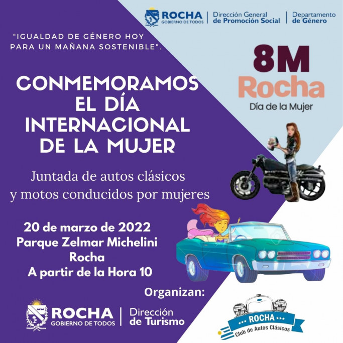 La Dirección de Turismo, Dirección General de Promoción Social, Dirección de Género y el Club de Autos Clásicos invitan a una Juntada de autos clásicos y motos conducidos por mujeres celebrando el Día de la Mujer, en el marco del Campeonato Nacional de Rally. Además se realizará una feria de emprendedoras.