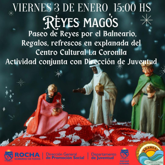 Fiesta de Reyes Magos en la explanada del Centro Cultural de La Coronilla, con entrada libre.