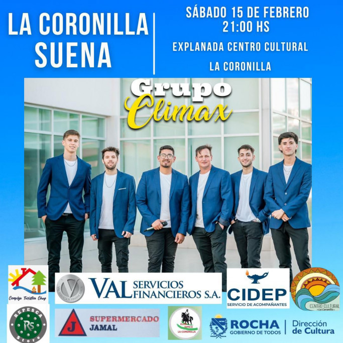 Grupo Climax se presenta en La Coronilla Suena, edición 2025. En la explanada del Centro Cultural, con entrada libre.