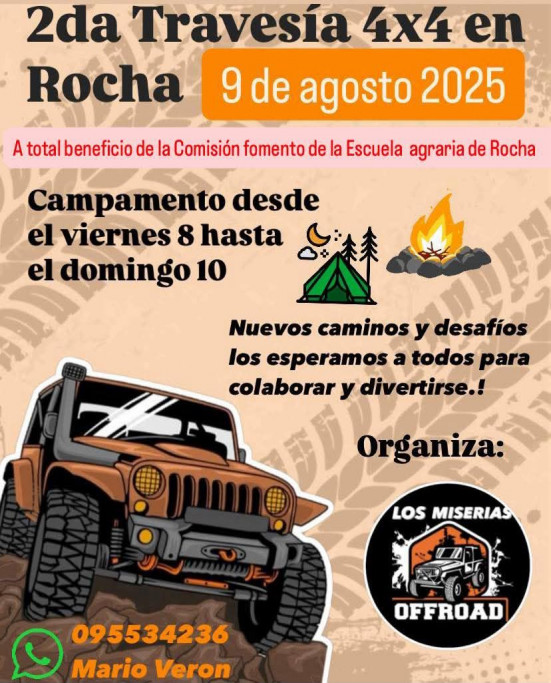 2° Travesía 4x4 "Nuevos caminos, nuevos desafíos" en Rocha, a total beneficio de la Comisión fomento de la Escuela Agraria de Rocha.